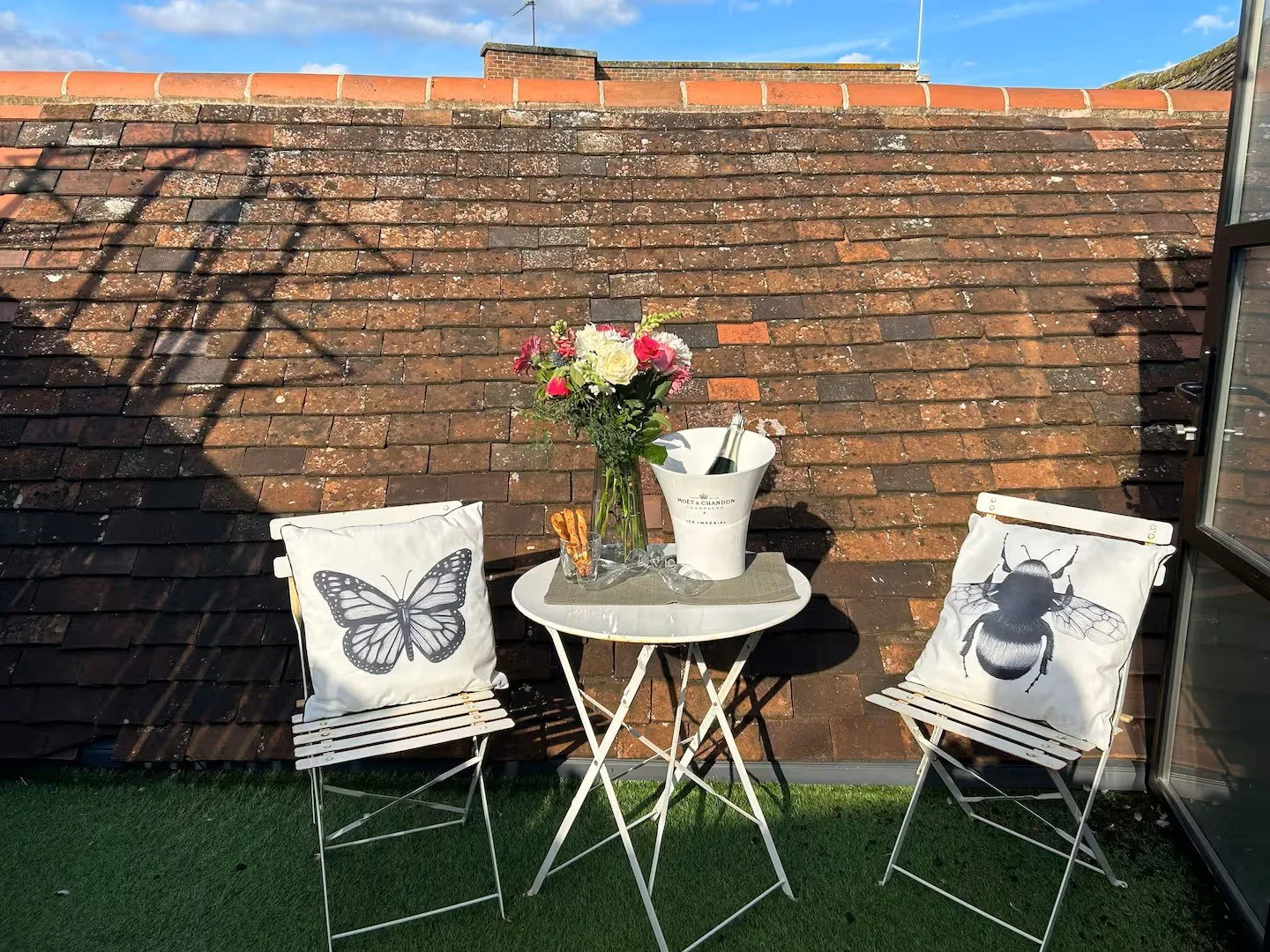 The most perfect little piece of outdoor space set amongst the roofs of the building. Perfect sun trap or evening spot for an apero before heading out to the restaurant.